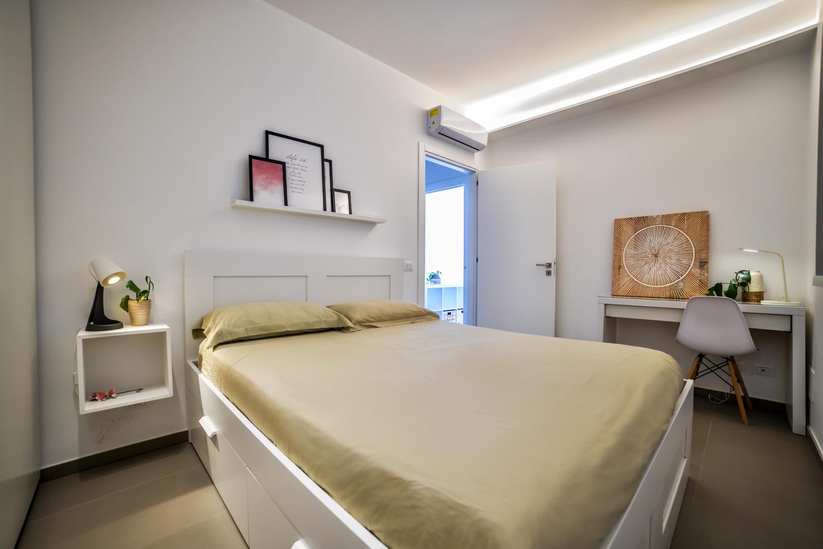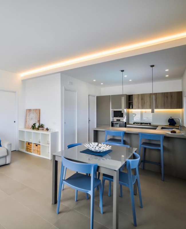 Moderna e luminosa, questa unitร abitativa indipendente al primo piano offre una splendida veranda panoramica con vista mare, ideale per colazioni allโaperto o momenti di relax al tramonto.